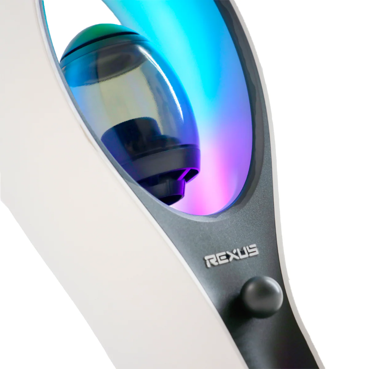 Rexus kini menghadirkan sebuah produk dengan dua fungsi, yaitu Headset Stand sekaligus Speaker. Dengan desain futuristik berwarna putih clear, membuat tampilannya lebih menawan. Lampu RGB LED berjumlah 10 mode yang mengitari badan headset stand juga dapat diatur dengan satu klik saja.